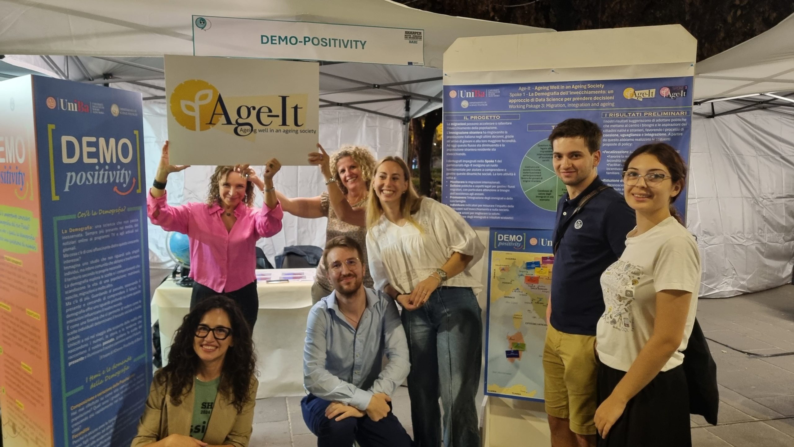 A Bari, il gruppo di ricerca dell’Università di Bari Aldo Moro (parte di Spoke 1) ha partecipato alla iniziativa svoltasi in Piazza Umberto, con un stand e un talk dedicato al tema: DEMO-POSITIVITY. “Demo-Positivity” è stato uno stand divulgativo con l’obiettivo di rendere la demografia accessibile e coinvolgente. Attraverso giochi informativi e curiosità, i visitatori hanno scoperto come i dati demografici raccontano la storia delle popolazioni e influenzano il nostro futuro. Anna Paterno ha poi tenuto un talk dal titolo: POPOLAZIONE. La parola “Popolazione” assume da sempre e soprattutto in questo momento storico un ruolo cruciale livello anche sociale e politico. Da ciò emergere anche la rilevanza della scienza che la studia, la Demografia, di cui molti, soprattutto i più giovani, non conoscono il vero significato. Sono stati evidenziati due processi particolarmente importanti a livello locale, nazionale e globale: i cambiamenti della struttura demografica, in primis l’invecchiamento, e le migrazioni internazionali e interne.